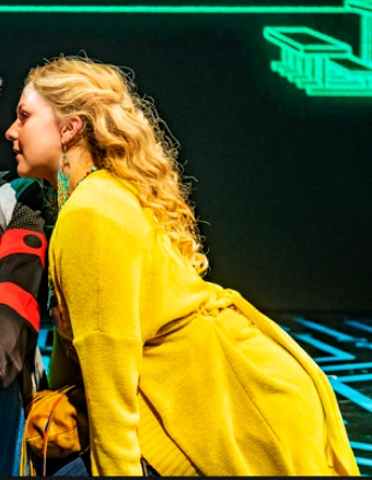 - The ankle-length yellow cardigan worn in the Off-Broadway and Broadway productions is from ASOS, though the item is currently sold out.